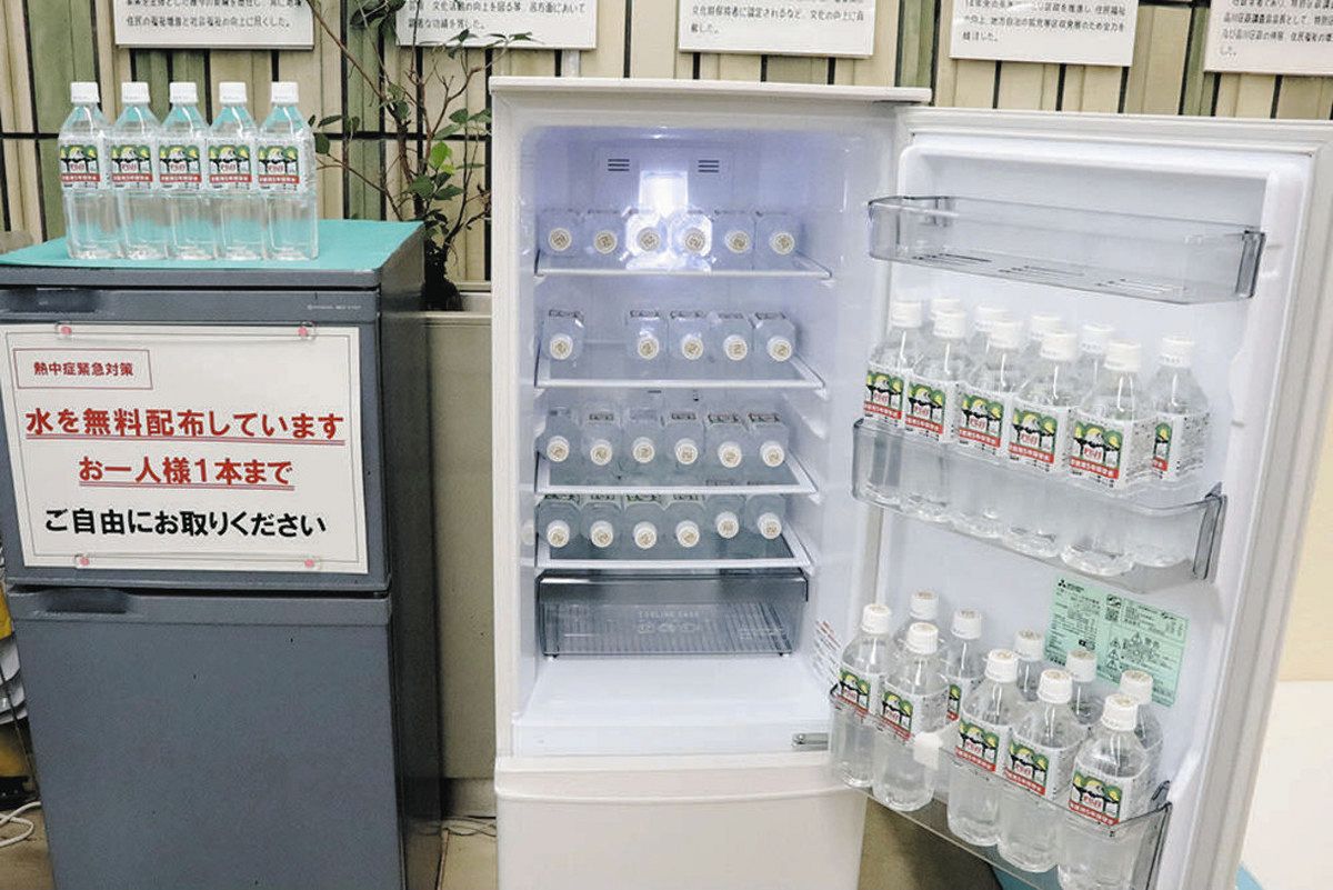 配布する飲料水は、災害備蓄で消費期限が迫ったペットボトルの水などを優先的に活用する。本年度の予備費3億円からは、塩分タブレットやイオン飲料などの購入で計200万円が支出済み、支出決定済みで、今後も状況に応じて物品購入を検討するという。(佐藤航)
