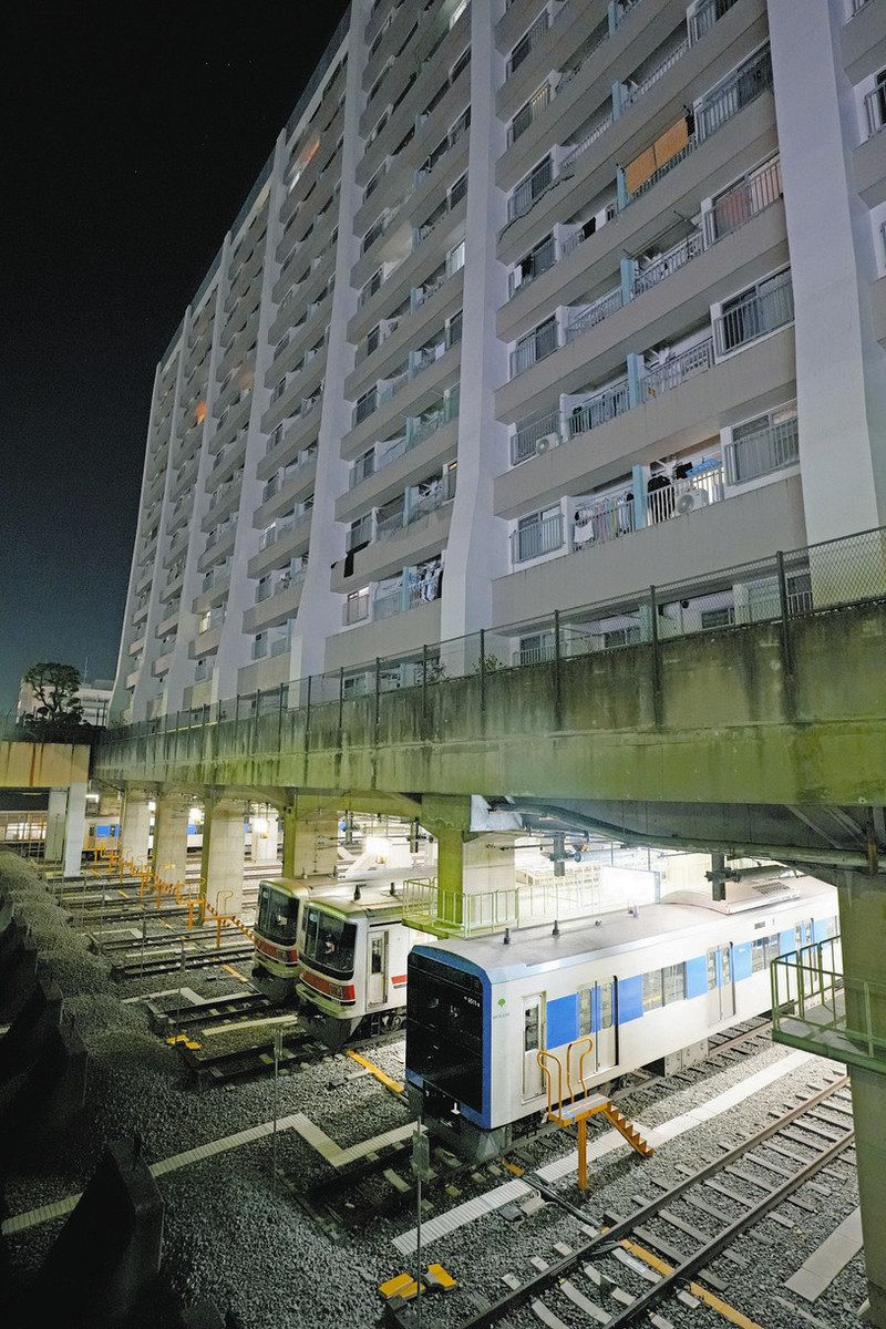 都営地下鉄車庫の上にそびえ立つ西台アパート=板橋区で
