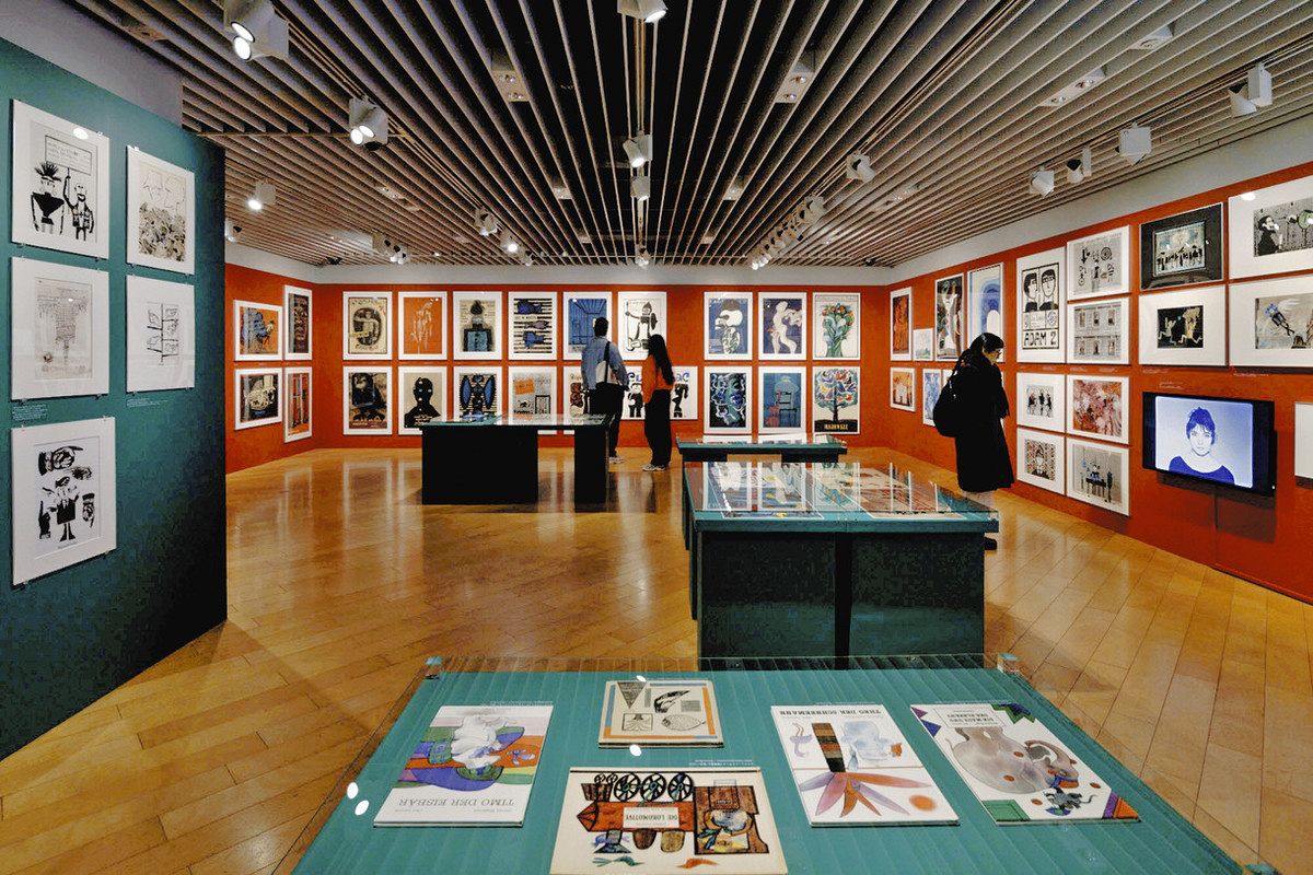 入り口を入ってすぐ、四方の壁面に上下びっしりとポスターが並んで展示された空間に放り出される。それぞれのポスターの独特な構図、配色、ラインのリズムひとつひとつもとても楽しいが、驚くのはその多様な制作目的だ。キャプションを見ると、オペラやクラシックのコンサート、芝居、人形劇、美術展、あるいはオリンピックなどの世界的なスポーツ大会、博物館の展示のみならずその館自体のポスター、国の公的な記念日のポスター、万博のポスター。それぞれに目的がありそのイメージをうまく拾いながら、それでも作家自身の作品であることが遠くからでもはっきり視認できる。なにより、本当にたくさんの、バラエティー豊かな文化の発展がポーランドという国にあったということが、これらのポスターを見るだけでわかる。