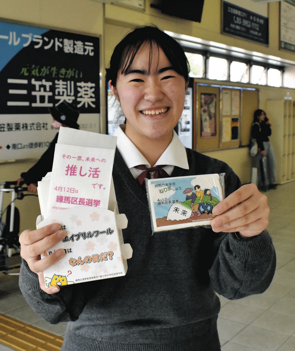 12日投開票の東京都練馬区長選で、同区の私立富士見中学高校の生徒たちがオリジナルの啓発グッズを作製し、投票を呼びかけている。