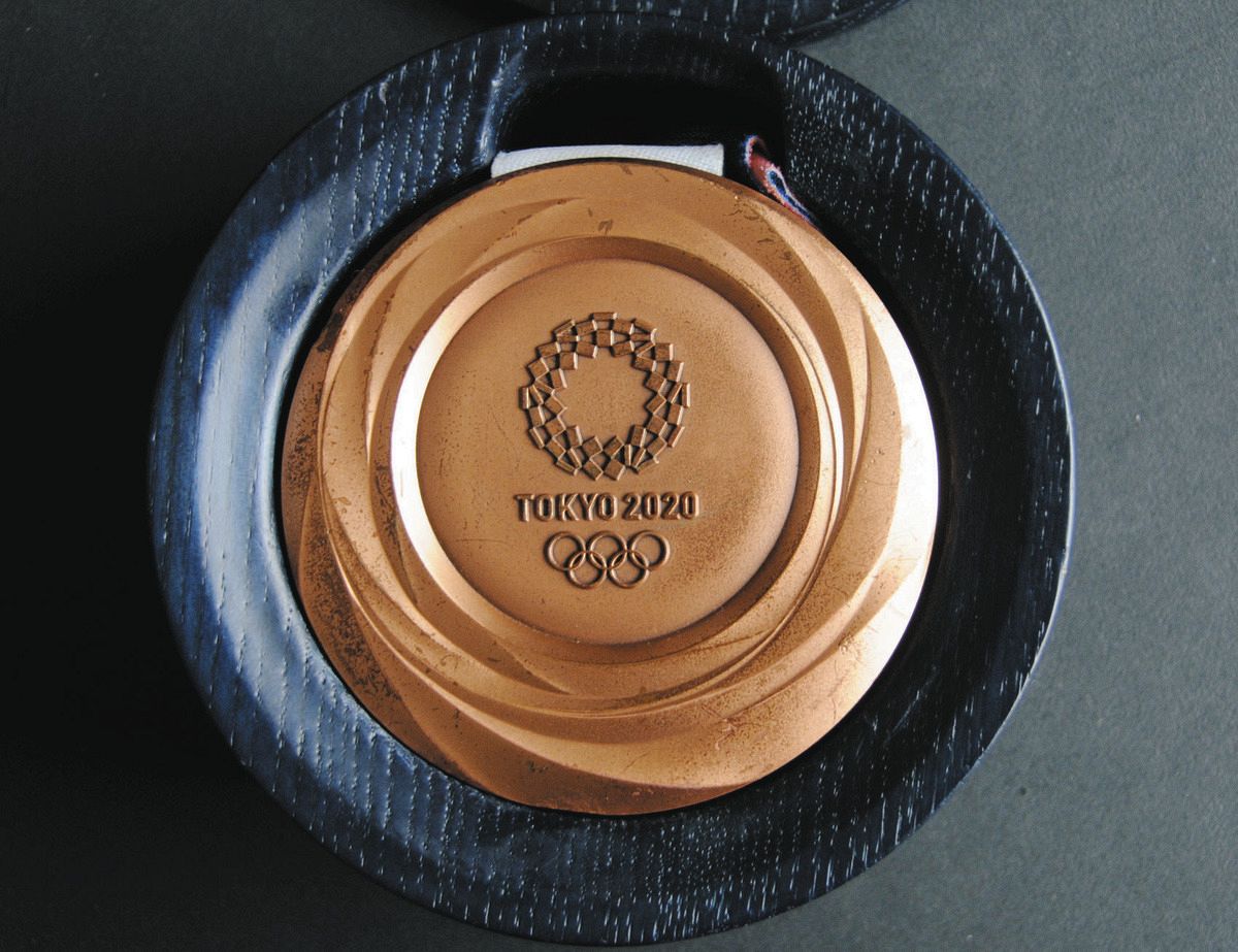 返還された銅メダル。表面には多数の細かな傷がある=東京都港区で(山口登史撮影)