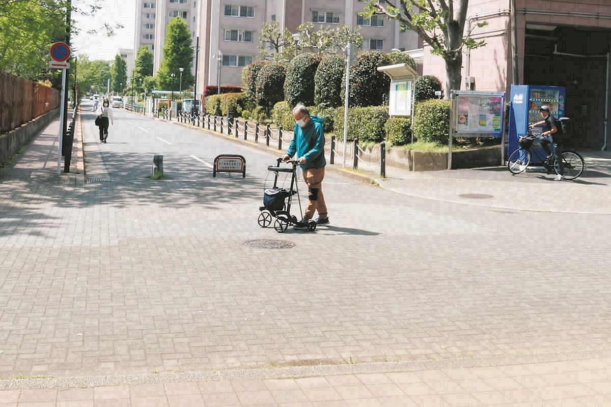 歩道を歩く住民。区道(奥)が手前に延伸すると車が横切ることになる=東京都板橋区で