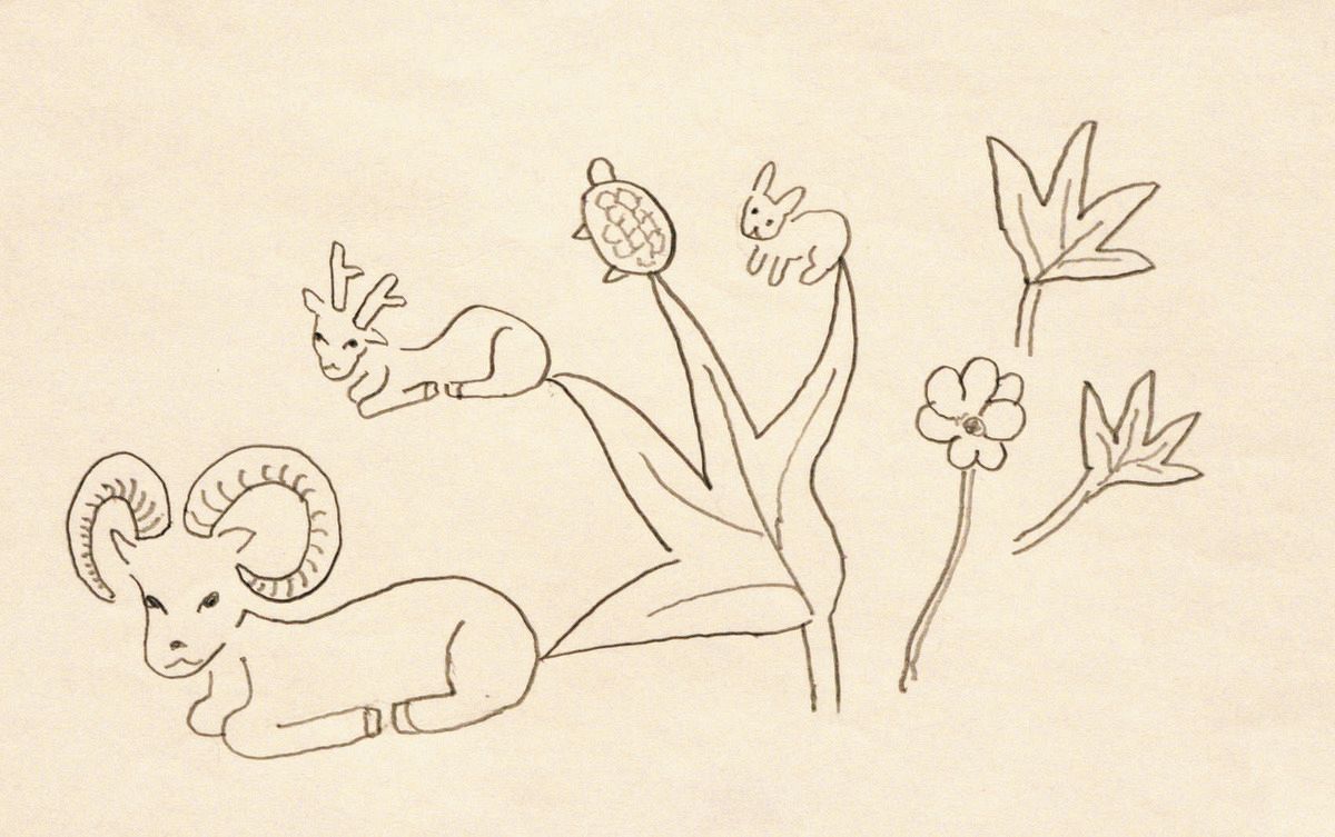 展示された約50点の「幻視画」のタイトルは、「ヤツデから精を吸っている動物たち」「多足の馬」など現実離れしたものも多い。来場した風間晃子さん(81)は「お見事。絵はがきにしたい」と感嘆。ほかの人からも「かわいい」「うまいよね」などの声が上がった。
