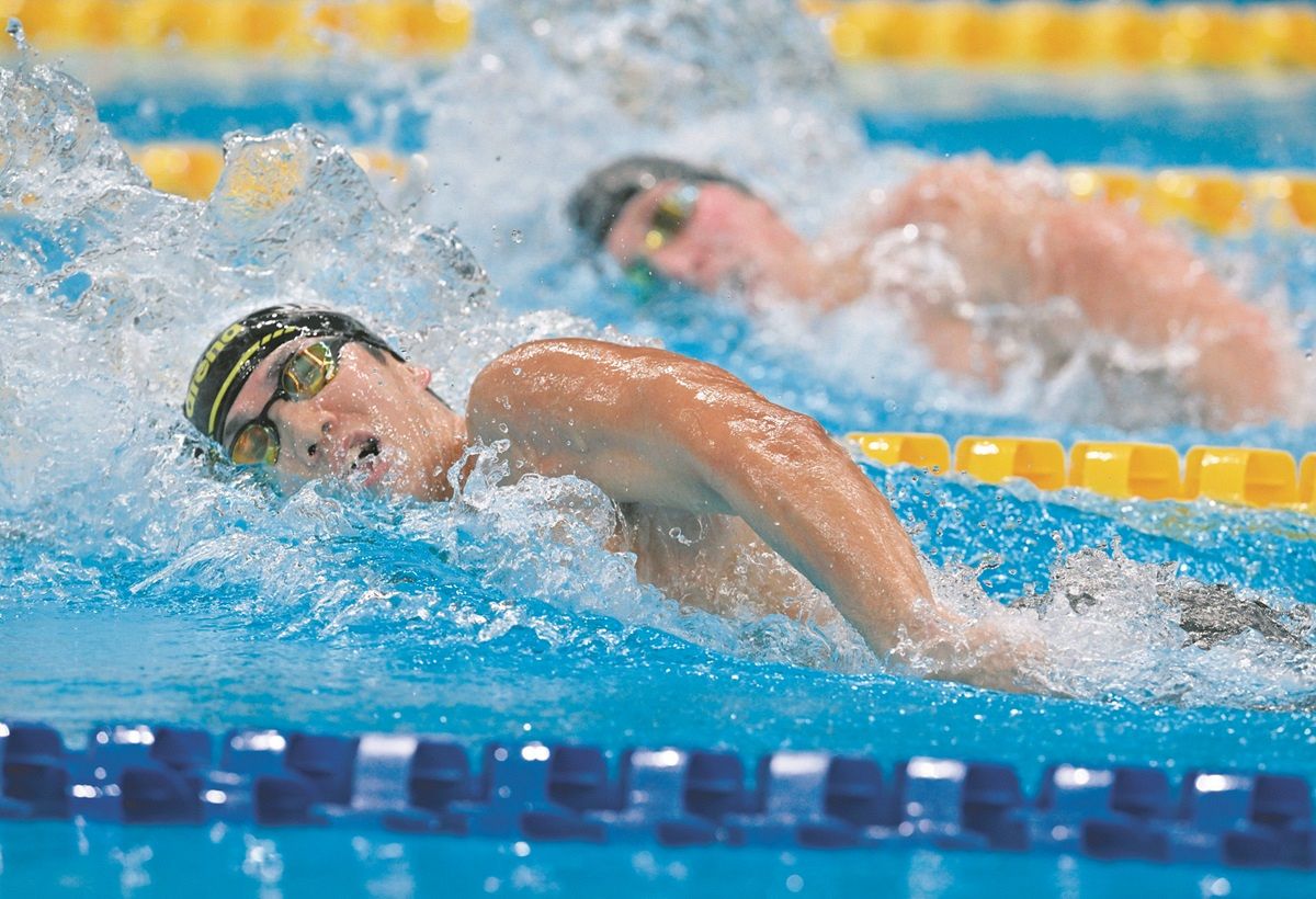 男子400メートル自由形で2位となった茨隆太郎=東京都江東区の東京アクアティクスセンター(七森祐也撮影)