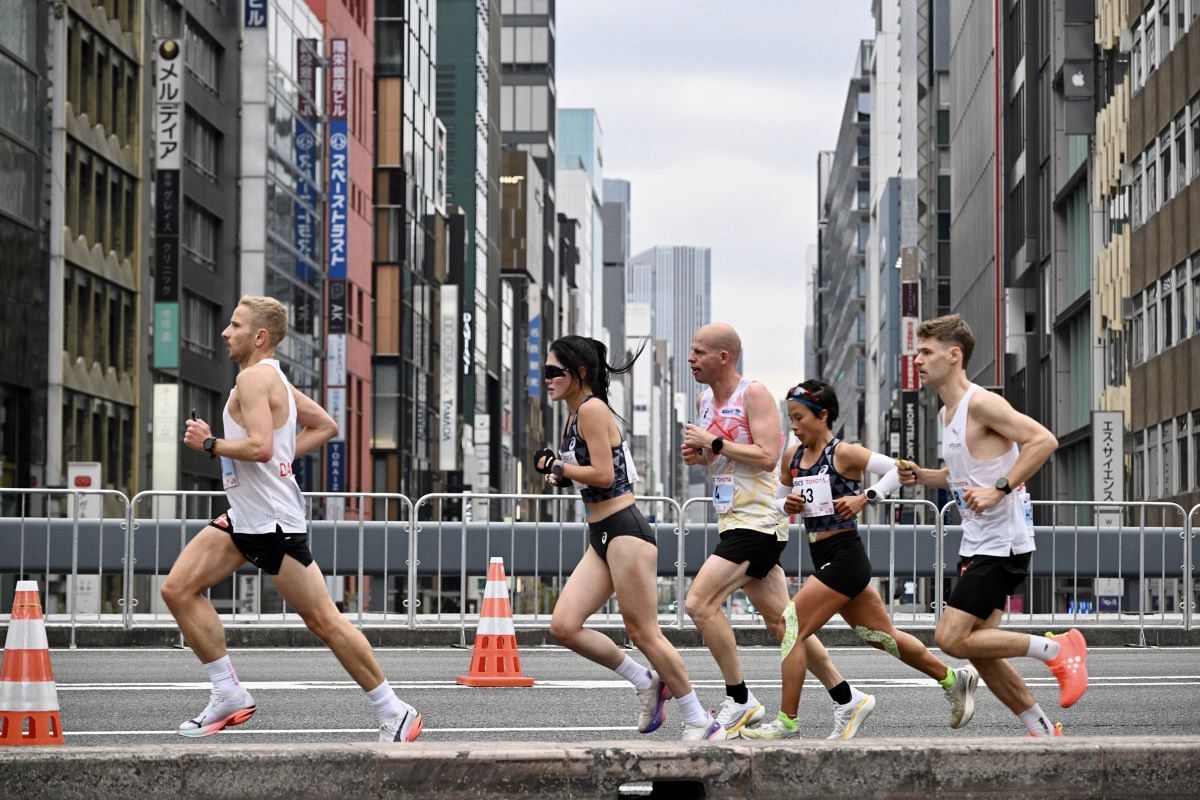 有楽町駅から近いKK線上の西銀座ジャンクション付近にスタートとゴールが設けられ、男女計46選手が午前10時に一斉に走り出した。KK線と、KK線に接続する首都高速八重洲線の計2.5キロの区間を往復し周回するコース。すぐそばには新幹線も走る斬新なマラソンレースとなった。
