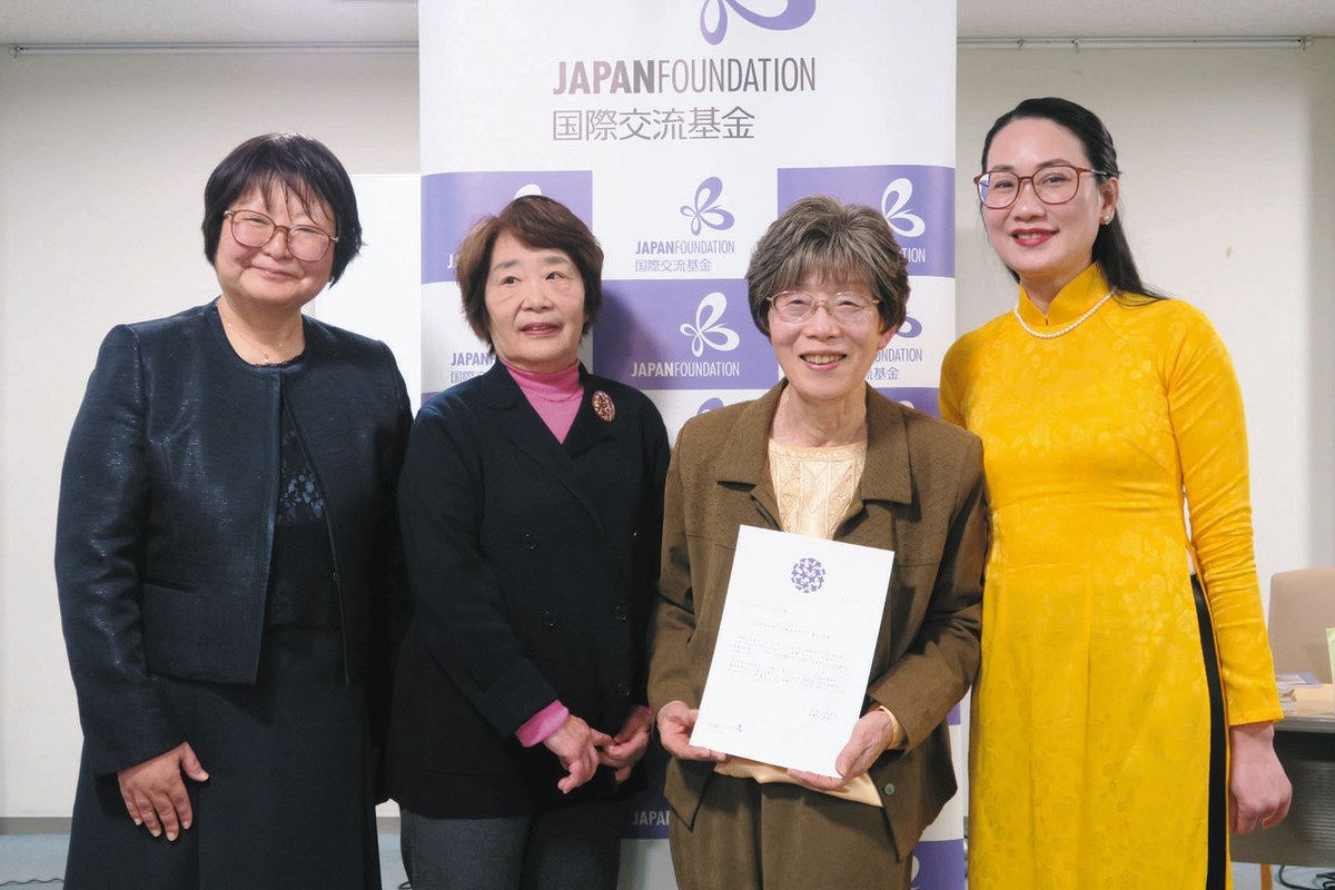 地球市民賞を受賞した「多言語絵本の会RAINBOW」の石原弘子さん(右から2人目)ら