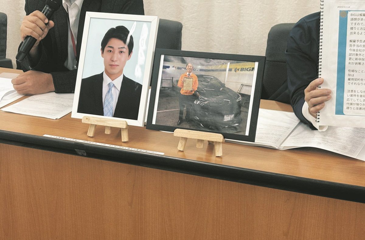 中古車販売大手の旧ビッグモーター(BM)に新卒で入社した男性=当時(22)=が自殺したのは違法な解雇が原因として、男性の両親が19日、...